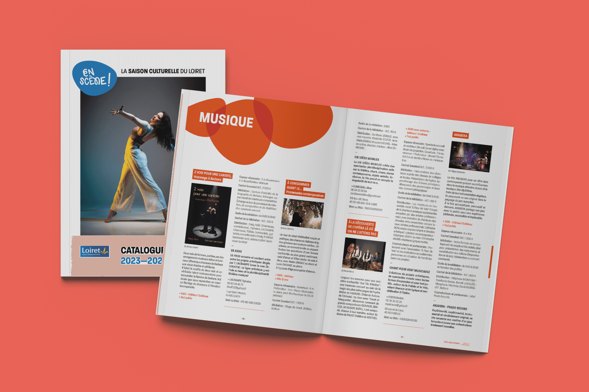 Cette identité est déclinée sur l'ensemble des supports de communication, affiches et agenda en ligne, ainsi que sur un catalogue annuel de plusieurs centaines de pages, outil de travail destiné aux communes pour composer leur programmation.